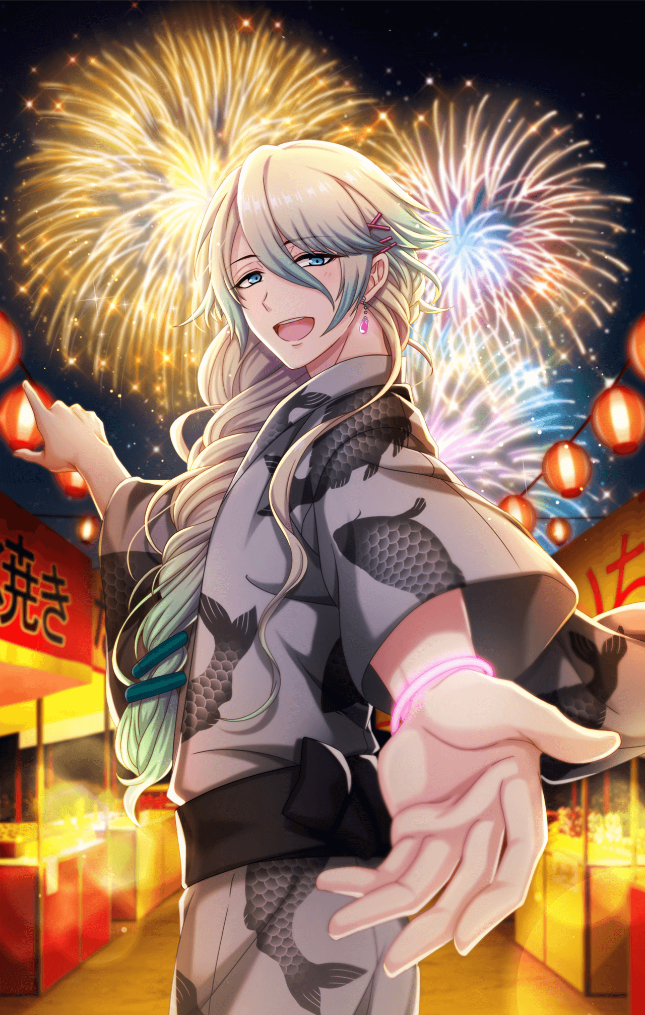 にっこりと笑うニキ先輩の後ろで最初の花火が上がる。